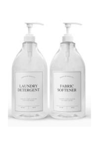 Analyze what items you use daily and need to have at your fingertips to make your work simpler. And don't hesitate to keep detergent, or fabric softener handy. Simply put them in aesthetically pleasing containers, such as glass canisters. I like the coordinated feel of matching sets rather than different bright packaging.